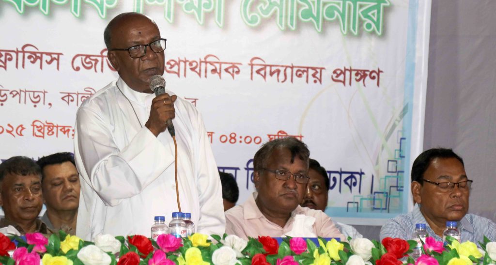 শিক্ষা সেমিনারের শুরুতেই পবিত্র বাইবেল থেকে পাঠ ও প্রার্থনা পরিচালনা করেন সুপারভাইজরি কমিটির সদস্য মারিয়া ডি’কুনা।
