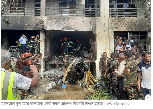 ২১, জুলাই উত্তরায় মাইলস্টোন স্কুলে বিমানবাহিনীর প্রশিক্ষণ বিমান বিধ্বস্তের ঘটনায় ২২ জুলাই, সকাল পর্যন্ত ২৭ জন নিহত এবং ৭৮ জন আহত অবস্থায় ঢাকার বিভিন্ন হাসপাতালে চিকিৎসাধিন রয়েছে বলে জানিয়েছে প্রধান উপদেষ্টার বিশেষ সহকারী (স্বাস্থ্য) মো. সায়েদুর রহমান। নিহতদের মধ্যে ২৫ জন মাইলস্টোন স্কুলের শিক্ষার্থী, একজন বিমানটির পাইলট ও একজন শিক্ষক।