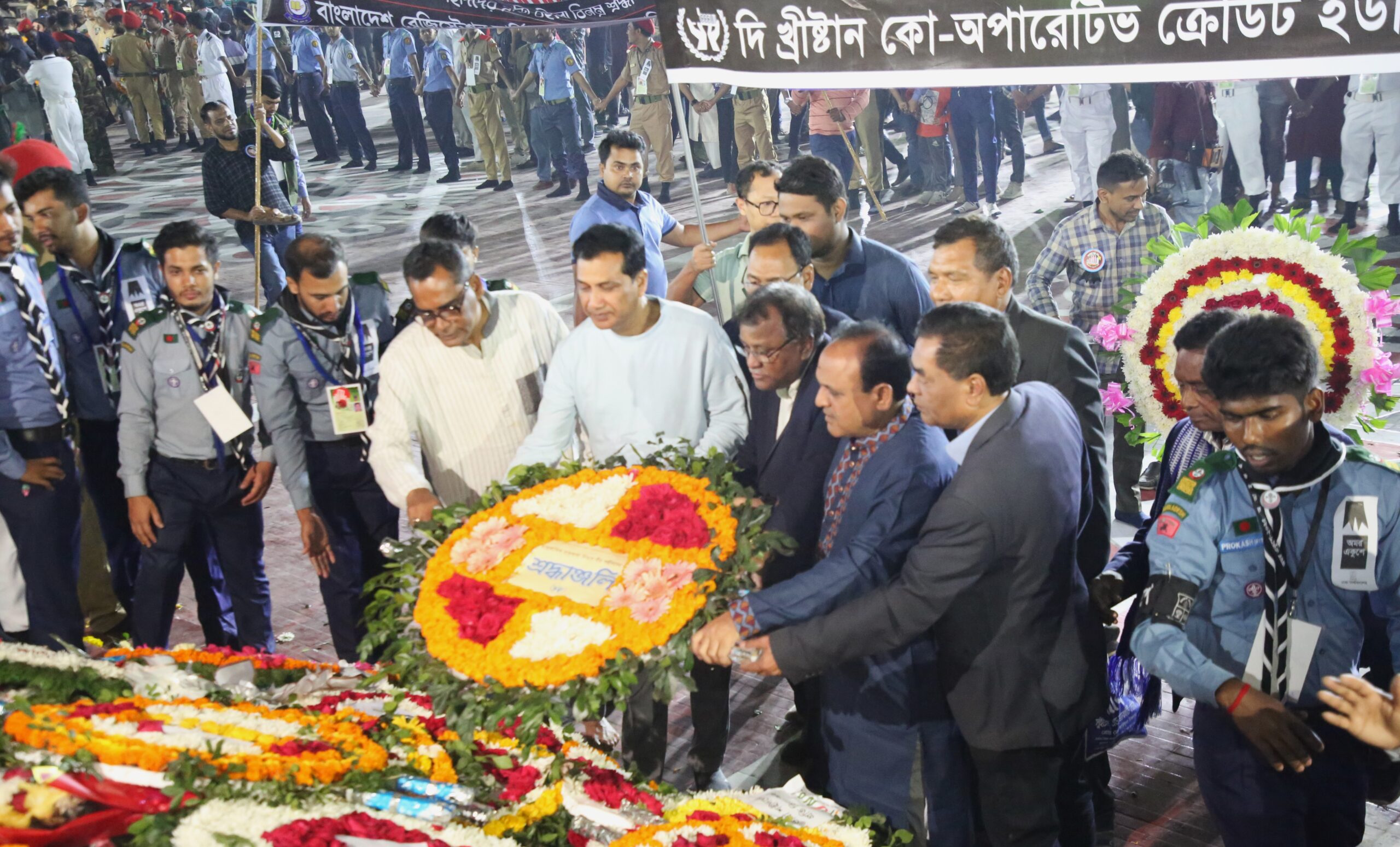 ২১ ফেব্রুয়ারি, প্রথম প্রহরে ঢাকা ক্রেডিটের প্রেসিডেন্ট ইগ্নাসিওস হেমন্ত কোড়াইয়া ও বাংলাদেশ খ্রীষ্টান এসোসিয়েশনের প্রেসিডেন্ট নির্মল রোজারিও’র নেতৃত্বে খ্রীষ্টান সম্প্রদায়ের নেতৃবৃন্দ ঢাকার কেন্দ্রেীয় শহীদ মিনারে শহীদদের প্রতি শ্রদ্ধা ও পুষ্পস্তবক অর্পণ করেছে।